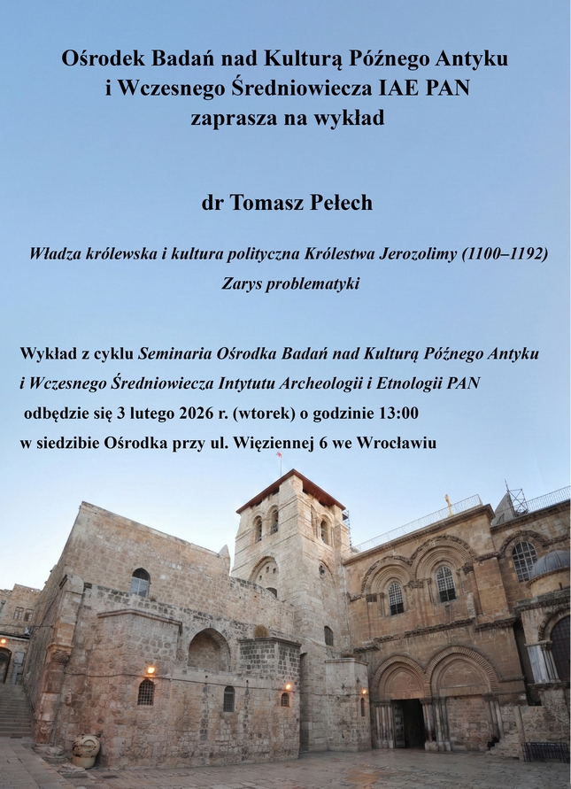 dr Tomasz Pełech - Władza królewska i kultura polityczna Królestwa Jerozolimy (1100–1192). Zarys problematyki - 3 lutego 2026 r. godz. 13:00