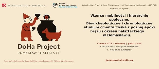 Wzorce mobilności i hierarchie społeczne. Bioarcheologiczne i chronologiczne studium cmentarzyska z późnej epoki brązu i okresu halsztackiego w Domasławiu. 3 marca 2026 (wtorek) | 13:00